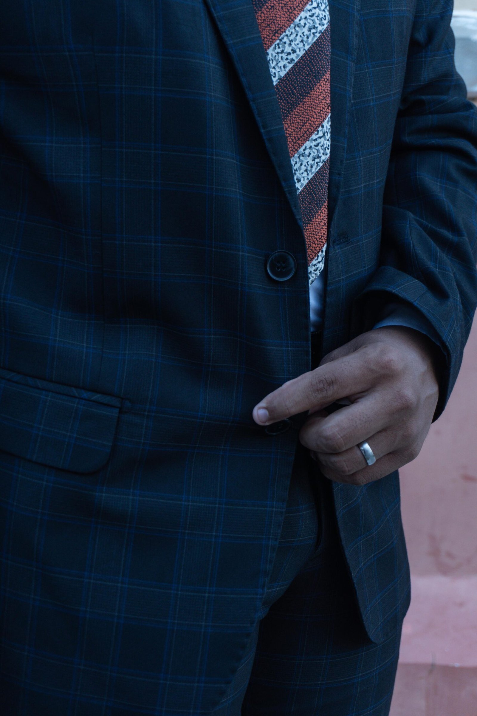 Com lapela de bico totalmente pespontada, botões de acabamento impecável e três bolsos com entretela que garantem estrutura firme, este terno une elegância e conforto. Seu forro estampado em malha fria oferece frescor e sofisticação em cada detalhe.