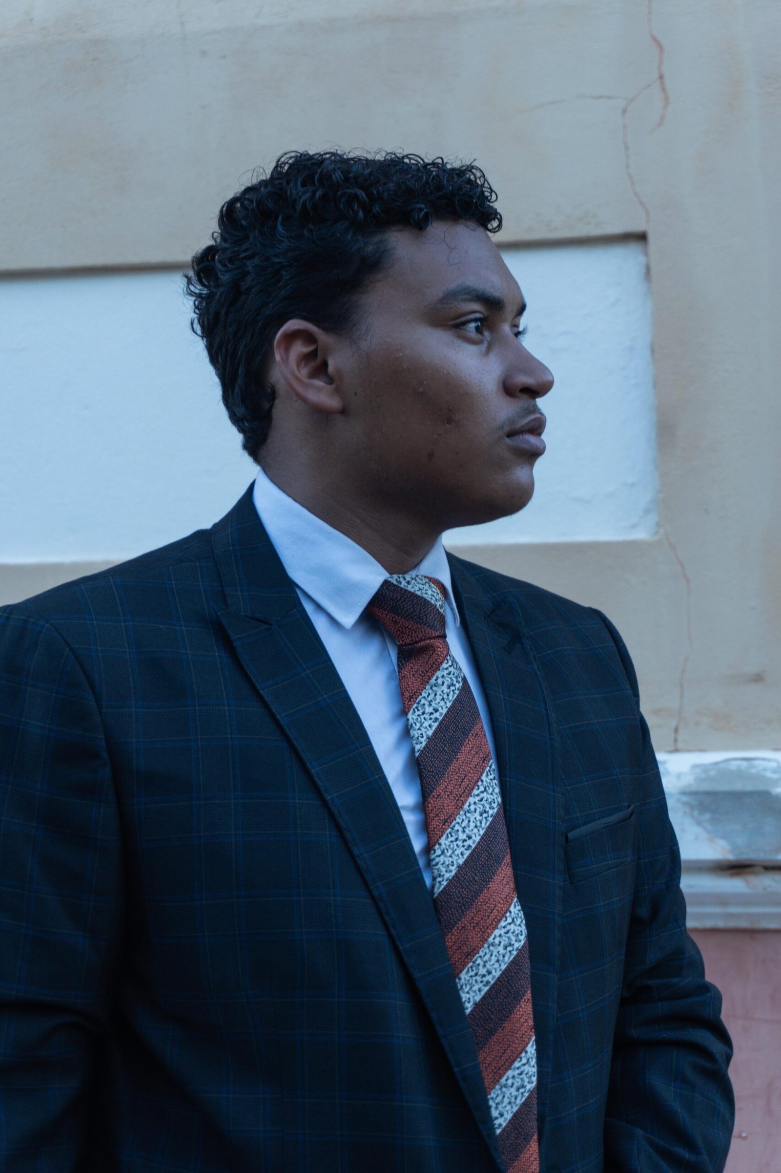 Terno em Poliviscose Premium na cor preto risca xadrez azul