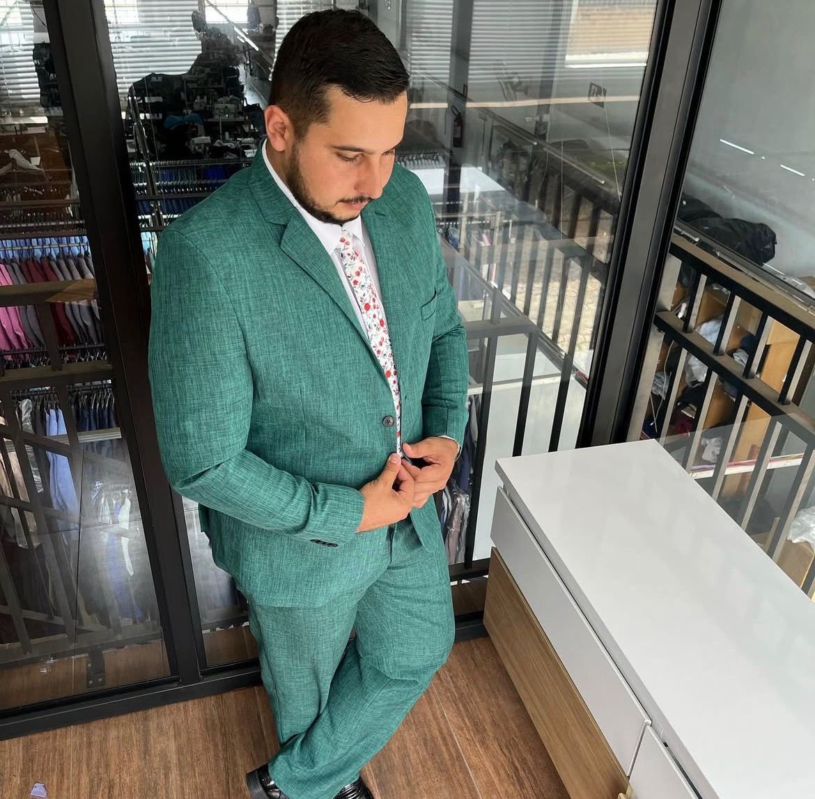Ideal para eventos formais, casamentos, confraternizações ou até mesmo para uso profissional, o terno verde melange em microfibra é a escolha perfeita para quem busca praticidade sem abrir mão do estilo.